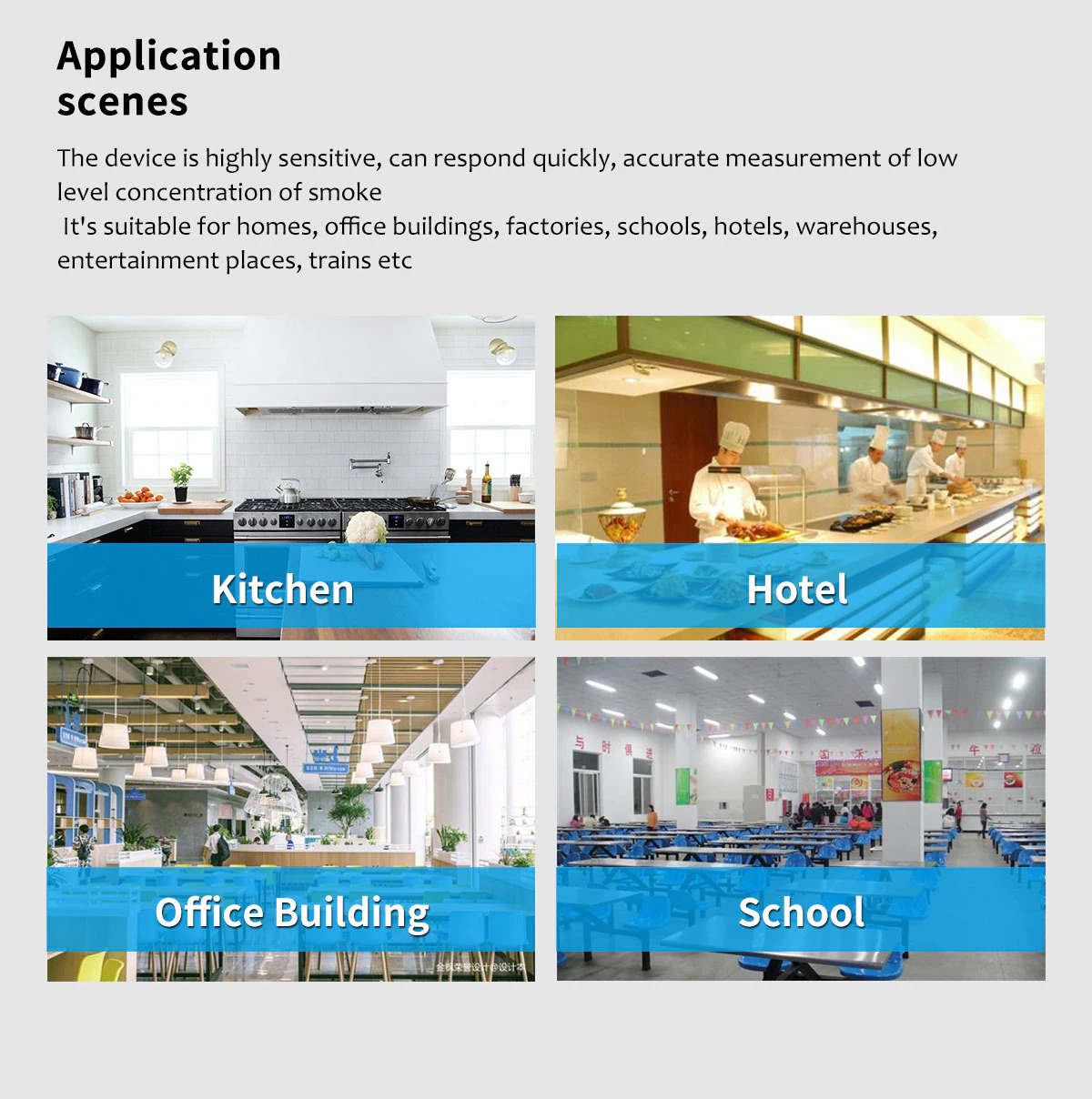 - With self test button, to supervise working status